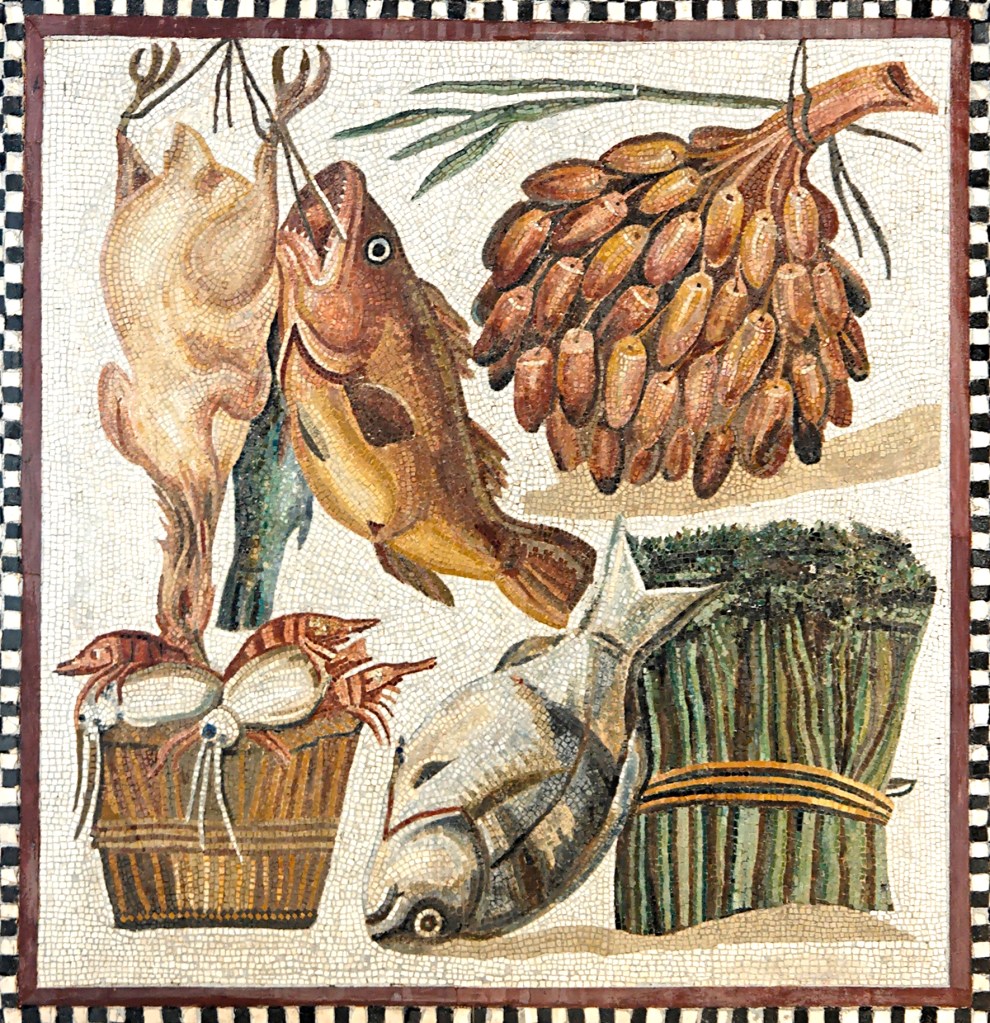 It’s an often repeated idea that meat was not something that most people ate in the classical world and that it was almost exclusively the wealthy who consumed animals. While meat consumption on average was probably lower than for most people in developed countries today, the idea that it wasn’t a significant part of commoners’ diets is demonstrated to be fairly inaccurate by the ample butchered bone remains that can be found around settlement sites throughout the Mediterranean. The class divide was less about whether people ate meat but rather which meats they ate, which might also have ethnic and cultural dimension, as in Judea for instance. Pigs in particular were a staple and pork was something the Romans brought more of a demand for where they went. The rise in pig presence in the Hellenistic and Roman periods in Judea has even led to the suggestion that Jewish farmers may have raised pigs to sell to Greco-Roman consumers! Whatever the case, in the social eating spaces of the Roman world, pigs were certainly the most prominent animal to get together and feast around. Aside from these, there were sheep, goats, and cattle, though these were generally more used for secondary products rather than meat. Keep in mind with large animals that a lack of refrigeration meant that slaughtering one for meat had to be justified by the presence of a group of people capable of eating everything there within a day or two and that it would mean loss of future production of products like wool or milk as well as pulling ploughs or carrying packs. Dairy was a major concern here as cheese was a frequent inclusion in the Roman diet.